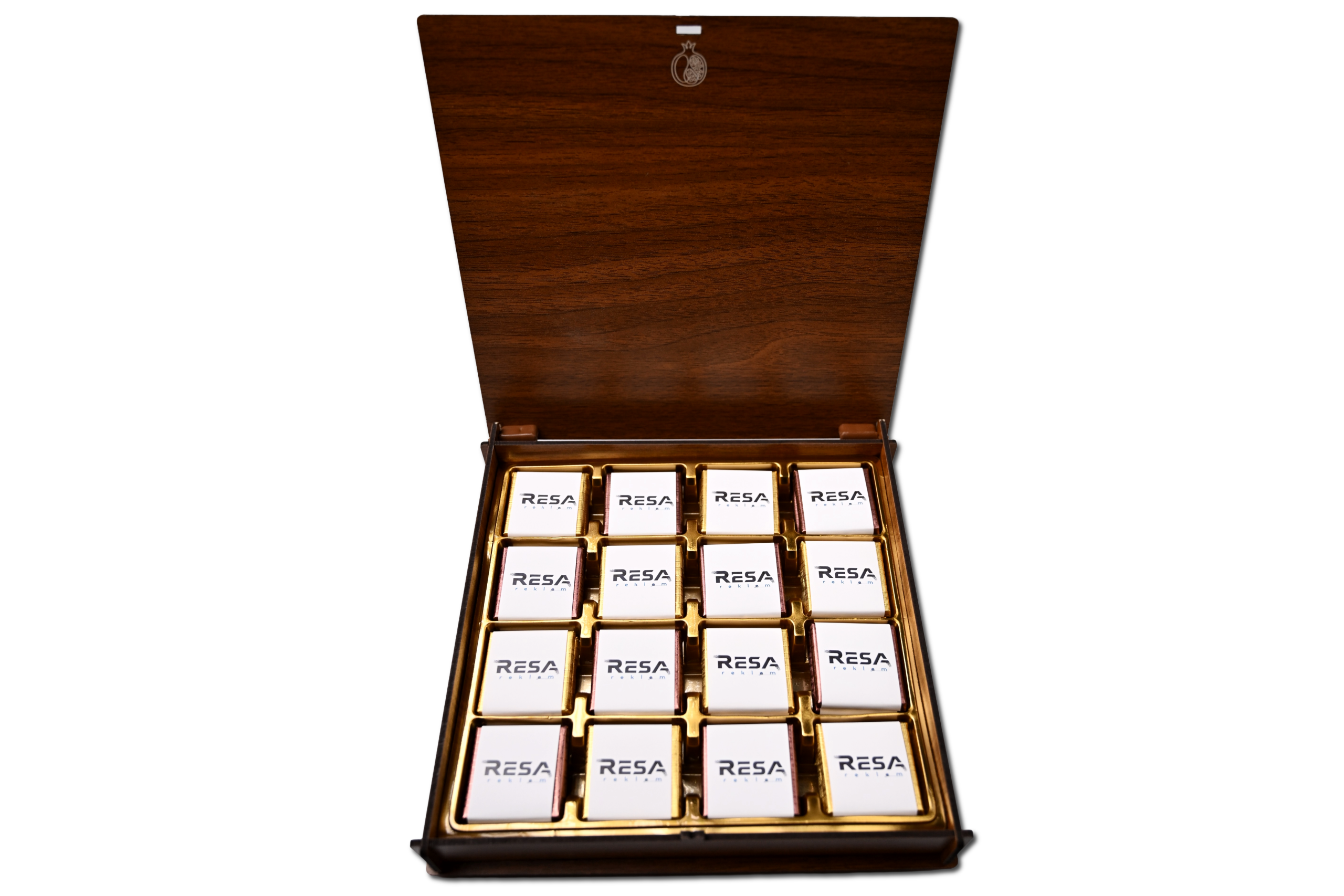 Lazer kazıma tekniği ile kapağına firmanızın logosunu ve hediye edeceğiniz kişinin ismini işliyoruz. Kutu açıldığında ise markanızın logosuyla sargılanmış, taptaze madlen çikolatalarımız karşılıyor. Hem göze hem damağa hitap eden bu prestijli hediye ile markanız her an hatırlansın.